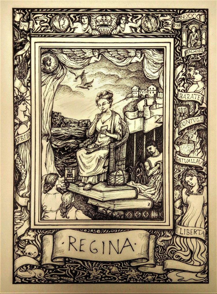 Regina, an illustration for the Working Classicists, based on a tombstone from South Shields Roman Fort.