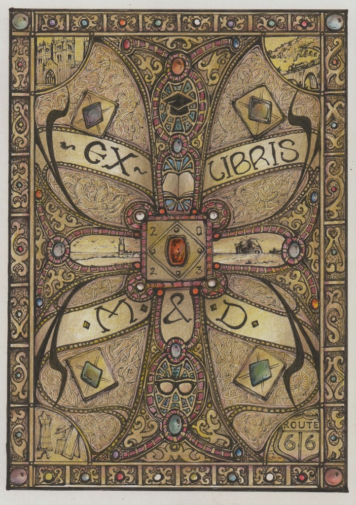 Bookplate based on the Lindau Gospels (private commission).