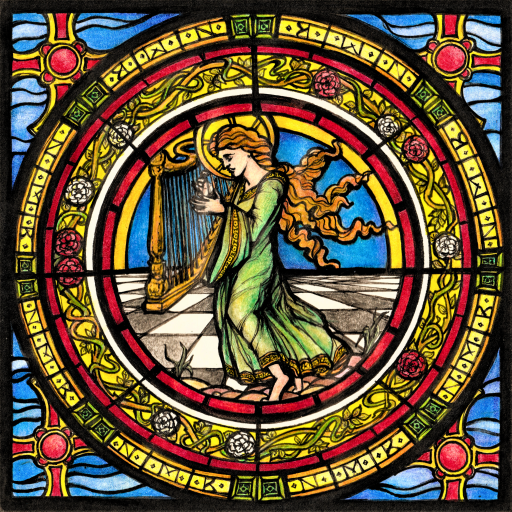 Stained glass window design commission (St Cecilia).